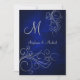 Este é um convite de casamento na moda com a noiva e o nome próprio do noivo e monograma em cinzas prateadas num fundo azul escuro. As cinzas prateadas bonito terminam na frente do convite. As costas guardam o texto do seu casamento no mesmo fundo. *Observe que a cor de fundo impressão muito escura. Você pode preferir uma cor mais clara e mais clara com um design semelhante e uma fonte diferente para o texto traseiro. Este design de convite parece melhor em papéis semirbrilhantes, cinzentos ou metálicos.