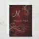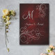 Este é um convite de casamento na moda, com aparência rica, com a noiva e os primeiros nomes do noivo e monograma em cinzas prateadas, num elegante gradiente vermelho de burgundy. As espirais bonito de prata terminam na frente do convite. As costas prendem o texto do seu casamento em cinzas prateadas no mesmo fundo vermelho. Muito bonito para casamentos de inverno ou outono, especialmente, mas na moda para qualquer estação.