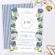 Convite de casamento do monograma floral azul