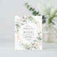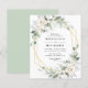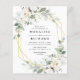 Um adorável design moderno com uma falsa estrutura floral geométrica de ouro rodeando texto e rosas brancas de aquarela.