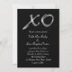 Um "XO" prateado cintilante decora este convite de casamento num fundo negro e ousado, fazer elegante e glamouroso. Funcionaria lindamente para o romântico casamento noturno, o evento formal de glitzy e chic, ou o caso de chimia da moda. Role para baixo para ver os itens de coordenação nesta coleção.