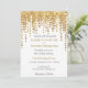 Um belo confete dourado parece contrasta com um fundo branco para fazer este convite especial. (Nota: Não se preocupe, NÃO há bagunça, estes convites não contêm brilho. São impressões gráficos de reprodução de trabalho de arte.) Tenham um evento maravilhoso!!