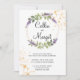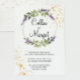 Bela grinalda floral de lavanda com elementos de fundo dourado para o seu convite de casamento. Fácil de personalizar. Party Parti PH © Mais designs disponíveis em nossa loja.