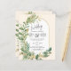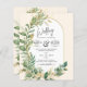 Folhas verdes modernas com sotaques de ouro, convite para casamento temático, arco moderno.