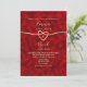 Ousado e moderno, este convite de casamento vermelho e dourado apresenta um fundo abstrato brilhante com um design de coração de corda minimalista e tipografia elegante. Perfeito para casamentos formais, culturais ou do Dia dos Namorados, este design combina cores marcantes com simbolismo romântico. Uma opção de destaque para casais que procuram um convite contemporâneo com calor e personalidade ricos.