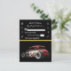 Convite de casamento de festa Hot Rod tem um carro antigo. Na parte inferior ao meio e um fundo preto com um local para colocar todo o texto de INFO.
