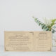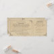 Este convite de casamento impresso no estilo de um tíquete de papel pergaminho vintage também incorpora um cartão de resposta RSVP destacável. Simples molduras de canto arredondado são acentuadas com rolos de folhas decorativas ornamentais e vintage. Os nomes da Noiva e do Noivo, juntamente com o cabeçalho de RSVP, também são destacados com trabalho de rolo decorativo. No verso, o endereço de devolução pode ser adicionado ao RSVP e mais detalhes do casamento à parte do convite. A linha de corte para o cartão de resposta é indicada na parte de trás do convite por uma linha tracejada pálida e uma imagem de tesoura.