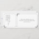 Este convite de casamento impresso no estilo de um bilhete antigo em clássico preto e branco também incorpora um cartão de resposta RSVP destacável. Simples molduras arredondadas são acentuadas com rolos de folhas decorativas ornamentadas e vintage. Os nomes da Noiva e do Noivo, juntamente com o cabeçalho do RSVP, também são realçados com trabalho de rolo decorativo. No verso, o endereço de devolução pode ser adicionado ao RSVP e mais detalhes do casamento à parte do convite. A linha de corte para o cartão de resposta é indicada na parte de trás do convite por uma linha tracejada pálida e imagem de tesoura.