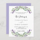 Um fundo branco decorado com flores de lavanda e folhagem de eucalipto. Personalize com seus nomes e detalhes.