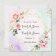 Um cartão de convite de casamento elegante projetado com sofisticação atemporal. Com um tema floral pastel suave em tons de rosa beije, lavanda e verde menta, o cartão combina lindamente flores delicadas pintadas à mão com acentos luxuosos em folha de ouro. A tipografia serifada refinada e a escrita cursiva fluida equilibram graça e legibilidade, enquanto o layout personalizável permite que os casais adicionem seus nomes, data e local do casamento com facilidade. Perfeito para casamentos de primavera ou de jardim, este design evoca romance, classe e elegância duradoura.