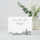 Convite de save-the-date moderno de Pittsburgh preto e branco em papel mate. A frente apresenta um esboço deslumbrante, definindo o tom perfeito para o dia do seu casamento. Adicione texto personalizado para torná-lo seu. Entre na ferramenta de design Zazzle para personalizações adicionais de design. Vem automaticamente em papel mate. Ajuste para semi-brilho se preferir.