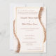 Redemoinhos de brilho em rose gold rodeiam uma moldura em ouro amarelo sobre um fundo pálido sussurrante, proveniente das fontes em rose gold profundo usadas para o texto. Dentro da moldura dupla está o seu convite em fontes contrastantes profundas em rose gold, como prometido. No verso, o fundo pálido sussurrante se repete. A redação é tradicional, mas facilmente alterada para se adequar ao seu casamento e personalidades.