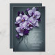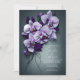 Um convite de casamento elegante com orquídeas em cor roxa escura.