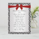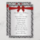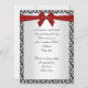 Convite de casamento sobre o fundo negro e branco damask com elegante design de fita vermelha satin-look para casamento formal, cerimônia de casamento e convite de recepção. O texto é totalmente personalizável. Adicione suas informações ou altere-as completamente. Selecione uma fonte e uma cor de fonte diferentes. O modelo pode ser utilizado para qualquer ocasião especial. Simplesmente mude o texto para atender às suas necessidades. Também pode ser usado para noivado, aniversário ou festa de aniversário. Se você deve escolher um convite de tamanho diferente, certifique-se de clicar na caixa para verificar se a imagem está formatada para preencher o modelo. não há embelezamentos separados neste design impresso e, portanto, não há necessidade de postagem extra.