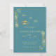 Um convite de casamento elegante, de cor distinta, com o nome, a data e a localização da noiva e do noivo.