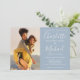 Com suas fotos especiais e nomes com estilo de assinatura, este convite de casamento elegante em azul poeirento pode ser personalizado com suas informações em letras sofisticadas. Criado por Thisisnotme©