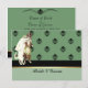 Verde com damasco preto apresentando dois gatos noivos com ilustrações vintage