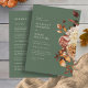 Este convite de casamento elegante tudo-em-um apresenta folhas de laranja queimada e terracota pintadas à mão em aquarela, dálias creme e bege, e belas rosas cor de ferrugem sobre um fundo verde sage. O verso inclui espaço para adicionar os detalhes do seu casamento. Encontre itens correspondentes na Coleção de Casamentos Sage Autumn Romance.
