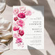 Boho Magenta Rosa Floral Elegante Simples Convite De Casamento, Rosa Quente. O estilo boêmico arranjou um convite floral minimalista ao rosa com flores elegantes e simples, cor-de-rosa boho magenta e botânicos, em cor-de-água impressa à mão. A cor de fundo magenta é maravilhosa para casamentos de boho e casamentos de blush magenta. Convites editáveis para primavera, verão, outono (outono) e casamentos no inverno.