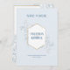 Este elegante convite para o casamento apresenta uma sofisticada ilustração floral azul monocromática em fundo branco limpo, enquadrado com uma sutil borda dourada. Combinando fontes clássicas de serifa e fontes delicadas de script, é perfeito para casais que buscam um eterno, minimalista e romântico. Ideal para um casamento clássico, elegante ou de tema azul. Personalize facilmente com seus nomes, data e local.