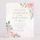Um elegante convite de casamento floral com flores cor d'água cor-de-rosa com caligrafia manual moderna.