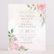 Um elegante convite de casamento floral com flores cor d'água cor-de-rosa com caligrafia manual moderna.