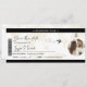 Um elegante convite de casamento com monograma em formato de cartão de embarque, um retrato do casal, um avião com uma trilha em loop e um modelo de save the date personalizável. Por favor, lembre-se de editar o texto no verso do monograma.