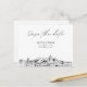 Convite de cartão postal moderno para salvar a data em preto e branco em papel mate. A frente apresenta um esboço deslumbrante, definindo o tom perfeito para o seu dia de casamento. Adicione e personalize o texto para torná-lo seu. Entre na ferramenta de design da Zazzle para personalizações adicionais de design. Automaticamente vem em papel mate. Ajuste para semi-brilho se preferir.