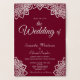 Convite de casamento em autêntica folha de prata com fundo burgundy no interior e um intricado desenho de flor de Mandala em prata falsa representando o florescer da Pureza dentro da nossa Alma. A cor Burgundy aumenta a energia de uma forma pensativa, digna e controlada. Estimula sentimentos de calor e conforto. Perfeito para uma cerimônia reservada de belo Outono e Inverno. Você pode alterar o texto no menu Personalizar. Entre em contato comigo para obter ajuda. Design Original de SunFreeStar.