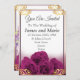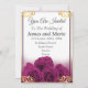 Convite de casamento elegante com rosas roxas. nome, horários, datas e localização totalmente personalizáveis de acordo com as suas necessidades