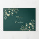 Simples, elegante, moderno convite de casamento 3 em 1 esmeralda verde tri-dobrável, com flores art déco douradas e foto do casal.