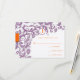 Royal Black Damask Wedding RSVP Response Cards Shown with the beautiful paper color showing which is felt - you choose background color from almost 200 colors and papers which alter the colors so click on customize and create your one of a kind invitation! shown with coral and lilac fonts - you choose colors in fonts as well - if you would like a glossy finish (glossy on front side only) order the basic, linen or metallic papers - for a matte finish order recycled, felt or speckled.