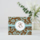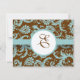 Convite de Casamento Elegante Vintage com Monograma em Damask Azul Água em Marrom - Novos Tamanhos