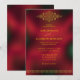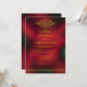 Este convite de casamento elegante e sofisticado apresenta elementos gráficos em estilo árabe/indiano. É totalmente personalizável, com gráficos e texto em dourado e um fundo desfocado vermelho e preto.