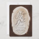 Convite de casamento rústico em fatia de madeira para salvar a data. Com belos detalhes em aquarela. Este convite de casamento moderno certamente definirá o estilo para o seu grande dia.