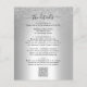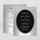 Convite de Casamento Elegante em Tom Prata com Brilho... Em um fundo de folha metálica prateada, nosso convite de casamento econômico "Tudo em Um" apresenta uma sobreposição única de brilho prateado ombre com o texto do convite em uma moldura oval preta com uma borda de folha prateada. O verso do cartão contém todos os detalhes que você normalmente veria em cartões separados no pacote de casamento. Este convite de casamento de estilo moderno foi projetado para ser elegante e econômico... sem mencionar prático. No verso, há também um modelo de gráfico de código QR que você pode substituir pelo seu próprio código (ou excluir se não planeja usá-lo). Todo o texto de exemplo pode ser facilmente revisado com suas próprias informações no modelo de personalização. POR FAVOR, NOTE: O papel do cartão "Econômico" não é exatamente o mesmo que os convites de cartão planos tradicionais. Nossos cartões econômicos são de 4,5 x 5,6 polegadas feitos de papel semibrilho de 110 lb em comparação com os cartões planos tradicionais de "Save the Date" de 5 x 7 polegadas em papel mate de 120 lb. Além disso, os cartões econômicos não vêm automaticamente com envelopes, como os cartões tradicionais, mas você pode comprá-los na mesma página ao finalizar