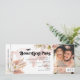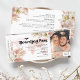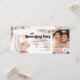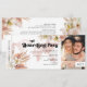 Convite de casamento moderno em forma de bilhete de embarque com fundo branco simples, foto do casal, grama das pampas e flores em aquarela rústica, código QR para você excluir ou substituir pelo seu, e um modelo de casamento todo-em-um editável e fácil de personalizar.