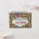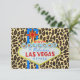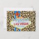 Este cartão de confirmação de presença para convidados combina um design divertido de Las Vegas com um fundo moderno de estampa de leopardo.