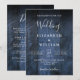 Este convite de casamento em madeira rústica azul tudo em um pode ser personalizado com suas informações em tipografia moderna e detalhes do casamento no verso. Criado por Thisisnotme