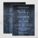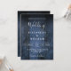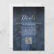 Este convite de casamento com fundo de madeira rústica boho azul pode ser personalizado com suas informações em tipografia moderna e um código QR do site do casamento no verso. Criado por Thisisnotme©