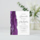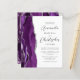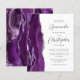 A borda esquerda deste convite de casamento moderno e elegante apresenta uma borda de ágata em aquarela roxa aparada com brilho de prata falso. O texto personalizável combina fontes script cinza prateado e sem serifa em um fundo branco. O verso apresenta um design de ágata roxa e prateada correspondente.