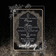 Um convite de casamento preto com decoração marroquina original. Você pode me dar um presente. Convide-me para o seu amigo e deixe-me saber que você o convidou para o seu casamento