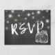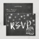 Modelos de Cartão-Resposta de Convite de Casamento - Elegante Jarra de Mason e Luzes de Corda Vintage com Fundo de Quadro de Giz Preto Grunge.
