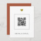 Esta é a maneira ideal de informar aos seus amigos e familiares sobre o seu casamento próximo. Adicione o código QR para o site do seu casamento. Se você ainda não tem um código, existem muitos sites online que podem fornecer um código gratuitamente. Você irá vinculá-lo à URL do seu site. Em seguida, traga o código aqui e faça o upload. Adicione seus nomes e, no verso, uma curta mensagem pessoal.
