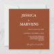 Este convite de casamento em terracota é exatamente o que você precisa para completar seu casamento moderno rústico boêmio. Ideal para um visual ocidental minimalista clássico ou um sentimento boho de outono retrô. A escrita branca natural básica se destaca contra o vibrante fundo de outono.