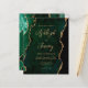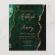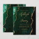 Este convite de casamento elegante apresenta uma imagem de fundo de ágata em aquarela verde esmeralda cortada com brilho dourado falso. O texto personalizável combina escrita moderna dourada, copperplate e fontes itálicas. O verso apresenta um design de ágata verde esmeralda e dourado correspondente.