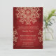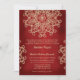 Um convite de casamento de um belo e profundo rubi granada e dourado com um padrão exótico de medalhão de sari ornamental inspirado na Índia com um design floral e de lótus. Este convite de casamento elegante e lindo no estilo indiano moderno é perfeito também para uma festa de noivado ou aniversário de casamento com um tema indiano, marroquino, do leste asiático ou indonésio. Criado por Chrissy H. Studios, LLC. Todos os Direitos Reservados.