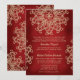 Um convite de casamento de um belo e profundo rubi granada e dourado com um padrão exótico de medalhão de sari ornamental inspirado na Índia com um design floral e de lótus. Este convite de casamento elegante e lindo no estilo indiano moderno é perfeito também para uma festa de noivado ou aniversário de casamento com um tema indiano, marroquino, do leste asiático ou indonésio. Criado por Chrissy H. Studios, LLC. Todos os Direitos Reservados.