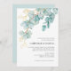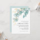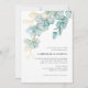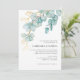 Este elegante convite para o casamento apresenta um gráfico de aquarelas de ramos de eucalipto cor azul clara, acentuado com botânicos de ouro.