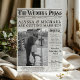 Personalize este convite de casamento clássico do tema único, tradicional e super divertido Jornal, com 3 fotos a preto e branco, manchetes de tipografia vintage e texto da história do estilo da coluna editorial, que também inclui um código QR e um site de casamento para RSVP. Adicione facilmente o seu texto, carregue as suas fotografias de noivado e o seu código QR para que seja o seu! Você pode editar ainda mais o posicionamento dos componentes do design, clicando no botão azul "Editar usando a ferramenta design" na parte inferior da janela "Personalizar" - navegue até a guia "camadas" na coluna esquerda da tela de edição, selecione a camada frontal ou traseira, clique no elemento da camada que você gostaria de alterar e clique no botão "concluído" quando terminar de seu gosto. população: população pode receber solicitações de design personalizadas e perguntas de modelo - clique no botão "mensagem" ou envie um e-mail diretamente: contact@figandlilyco.com. As fotos são apenas para fins de espaço reservado e devem ser substituídas. O Design é carinhosamente criado por Fig e Lily Studios, e o crédito fotográfico do noivado de nossa filha vai para IG: @laurenmargaretphotoographic